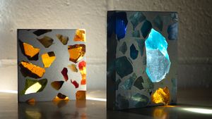 PIXA™ Dimensional was first introduced in October 2017, featuring light pillars of uniform height that created a secondary surface parallel to the terrazzo. In the latest update, varying the heights of the light pillars enables additional shaping of the secondary surface, adding a new dimension to the material and unlocking a wealth of customizable features that push the boundaries of versatility. A single shape can serve as the focal point, or different shapes and sizes can be nested within each other or within the panel. The intricacy of the production process has increased significantly in this new configuration, where each individual light pillar is unique and occupies its own specific place within the panel, unlike more standard placements. The meticulously handcrafted and individually cast slabs are finished with a sandblasted texture, enhancing the primary surface's rustic appeal when illuminated. For large-scale, multi-panel installations, not only can the scale of the pattern be adjusted, but elements can also be designed to flow seamlessly between panels, creating expansive, art-like illuminated architectural features.